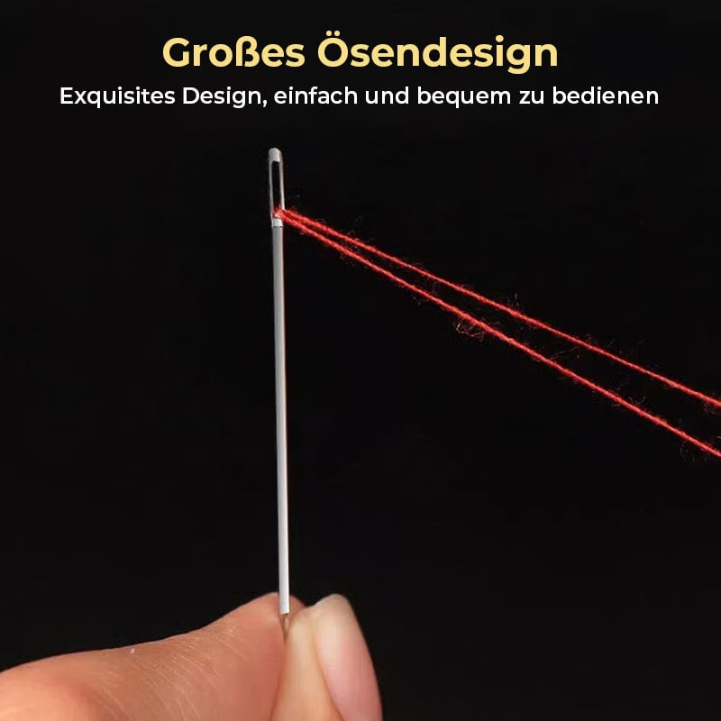 Nadelmerkmale: Scharfe Spitzen für leichtes Durchdringen des Stoffes; breites Öhr für einfaches Einfädeln.